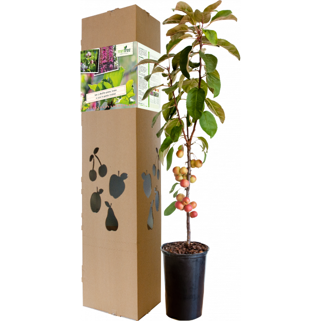 De MiniTree is een kleine appelboom die door zijn compacte formaat geschikt is voor iedere tuin. Van balkon tot boomgaard, dit appelboompje is ideaal. Het onderhoud van de mini appelboom is minimaal en snoeien en spuiten tegen ziektes is niet nodig. Bij een goede verzorging geeft de kleine fruitboom (MiniTree) in het najaar heerlijke appels. Je kunt vandaag nog je kleine boom kopen in onze webshop bestellen. Via onze social media kanalen houden we je onder andere op de hoogte van verzorgingstips en de ideale pluktijden per ras.