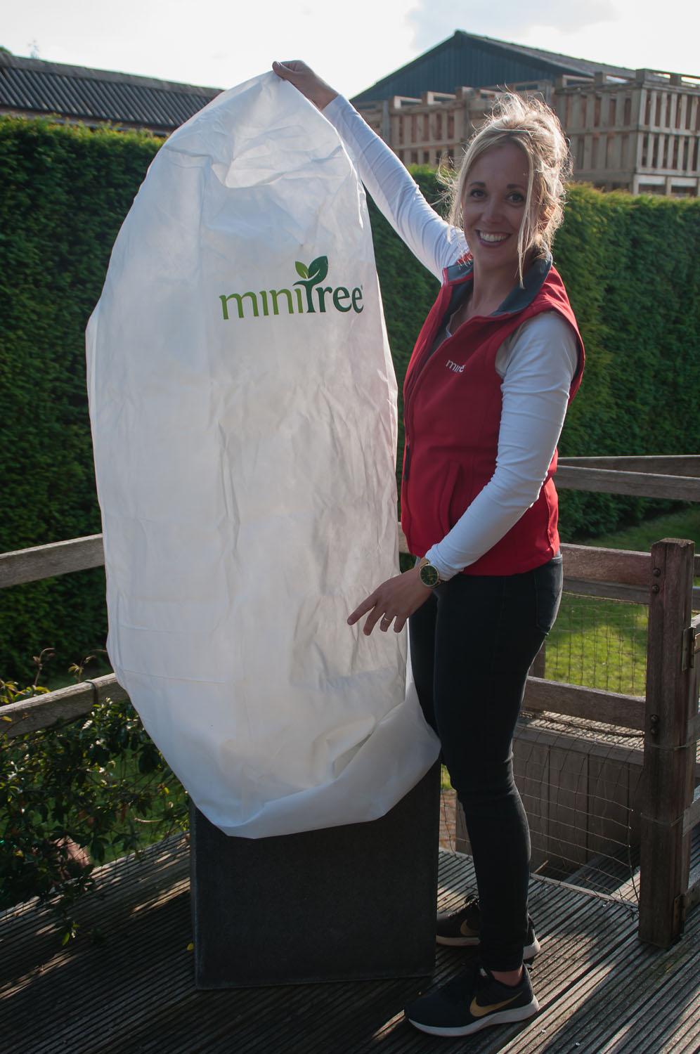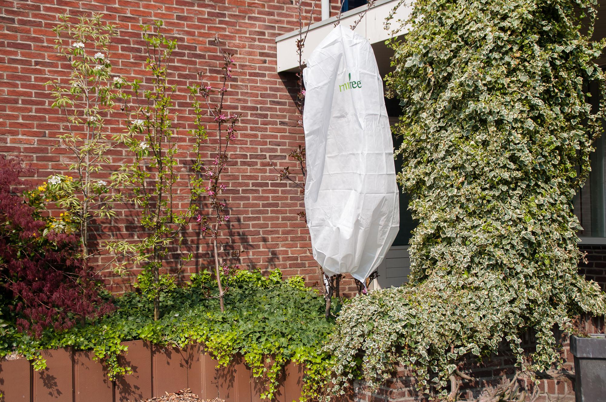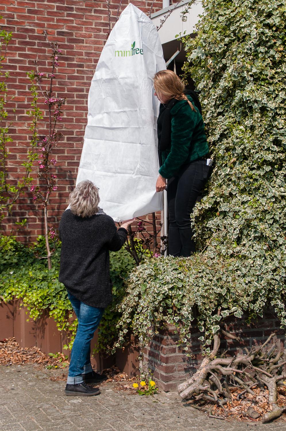 Een bloesembeschermer beschermt de bloesem van je MiniTree tegen nachtvorst in de maanden april en mei. Dit is van belang, want als de bloesem bevriest, groeien er in dat jaar geen appels aan je MiniTree. De bloesembeschermer is voorzien van een handig trekkoord, waarmee je de MiniTree snel kan inpakken en de beschermer veilig rond de stam van de MiniTree of gehele pot vast kunt maken.