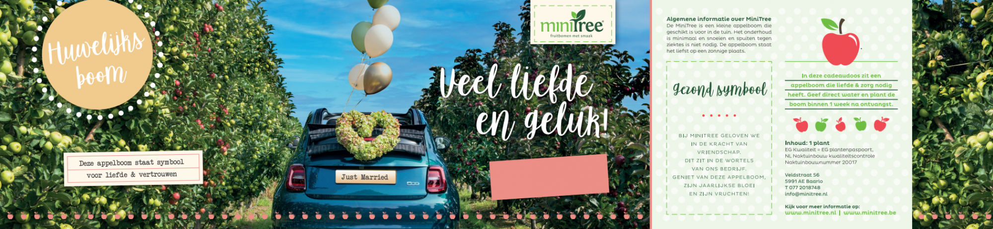 Een huwelijk is een bijzondere gebeurtenis en dat verdient een origineel cadeau. Met een MiniTree huwelijksboom geniet het bruidspaar in het voorjaar van mooie bloesem en plukken ze nog jarenlang heerlijke appels van jouw cadeau.