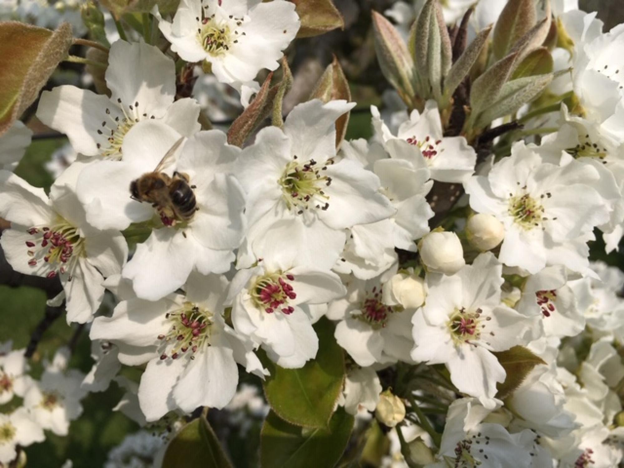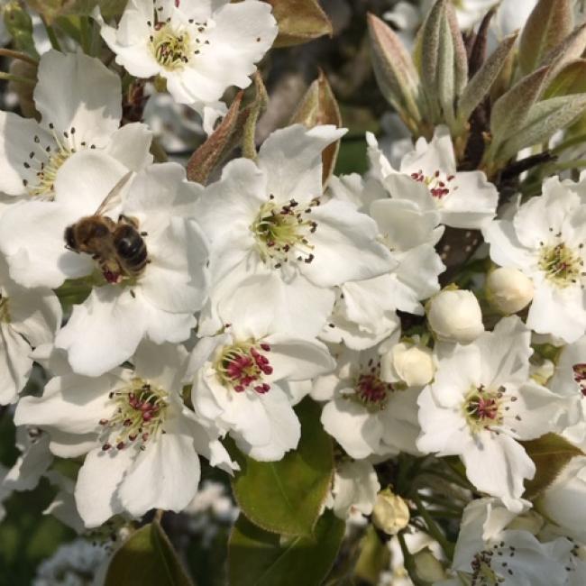 • Bloei; april, witte bloesem