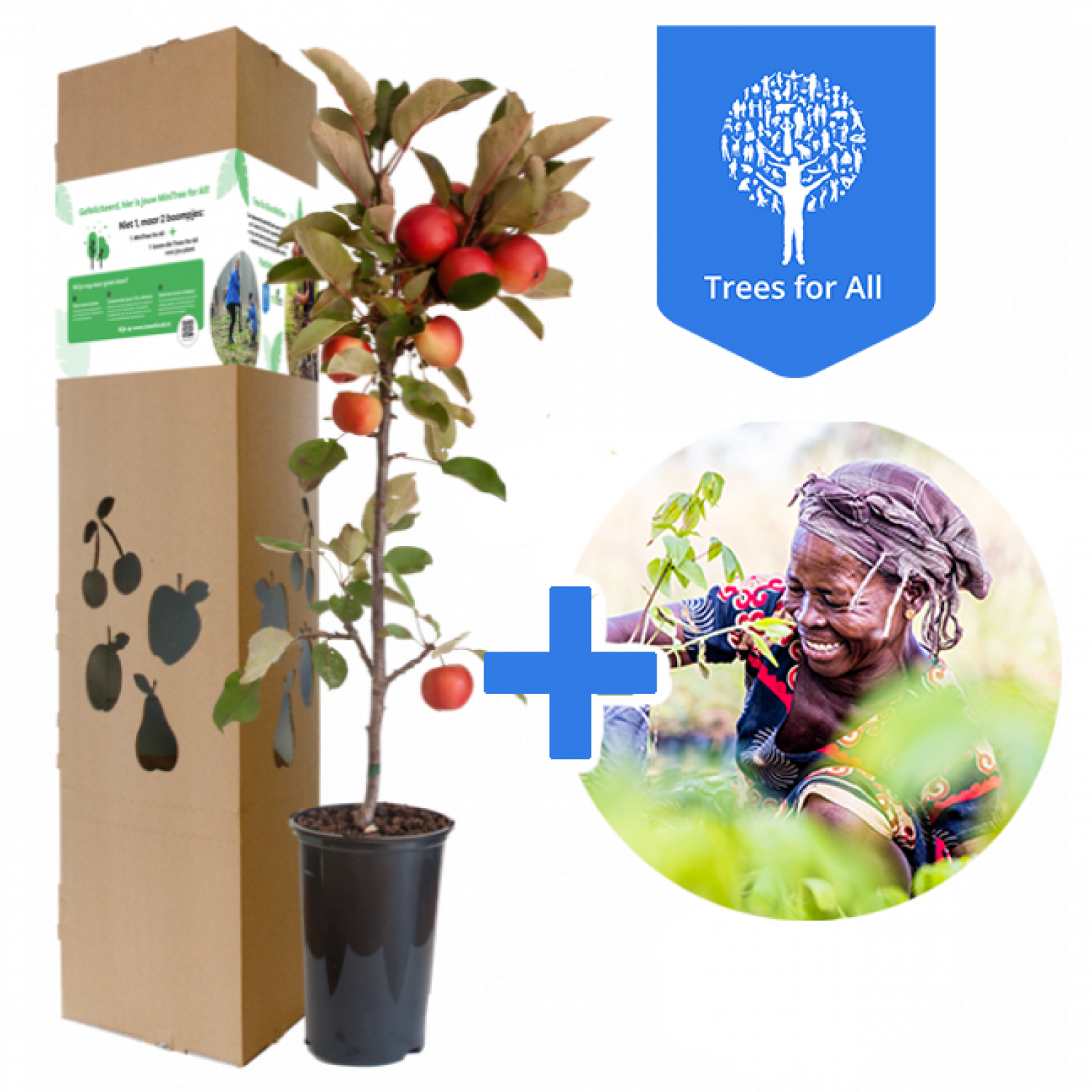 Met deze MiniTree for All geef je niet één, maar twee bomen cadeau. Dankzij de aankoop van dit prachtige appelboompje plant stichting Trees for All namelijk nog een boom in één van haar duurzame bosprojecten. Zo draag je bij aan een groene en gezonde wereld voor iedereen. Bij de beschrijving hieronder kun je meer lezen over de missie van Trees for All.
