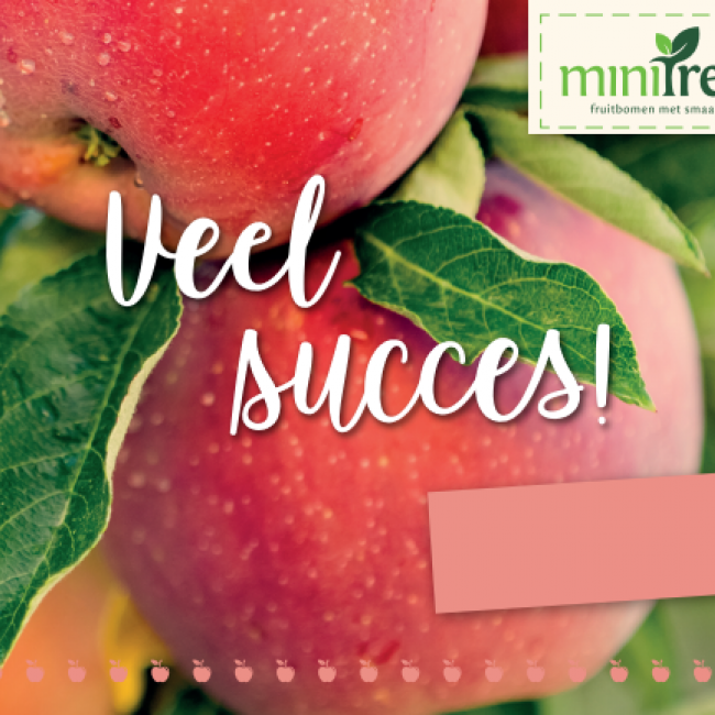 Je kunt iemand bijvoorbeeld succes wensen voor een examen, operatie, nieuwe baan, studie of voor de toekomst. De MiniTree "veel succes boom" zorgt door de heerlijke vruchten in het najaar en de mooie bloesem in het voorjaar nog jarenlang voor een blijvende herinnering.
