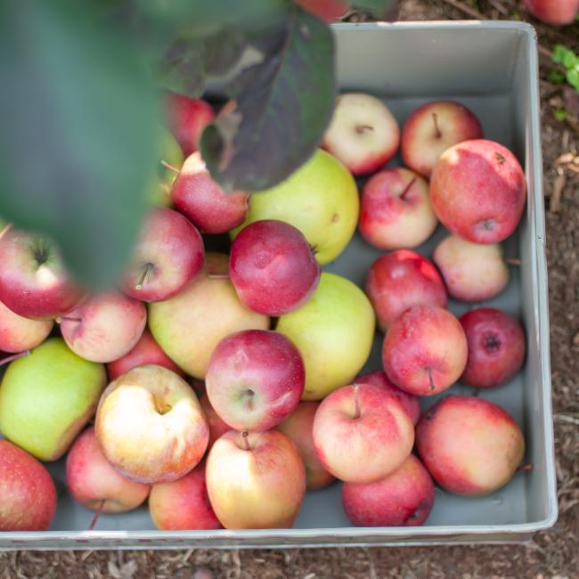 RedlaneEetbare rode appeltjes (vergelijkbaar met Granny Smith), met een doorsnede van 4 tot 5 cmZelf bestuivend